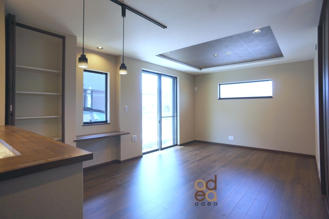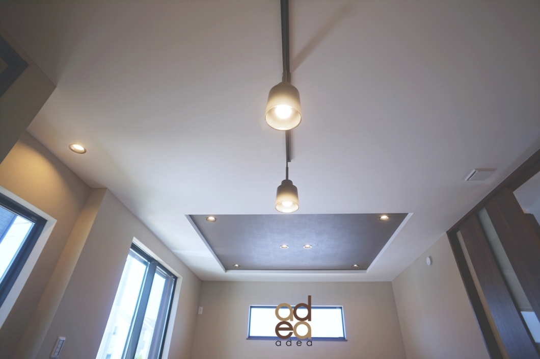 リビングにはスタディカウンター・ダイニング照明、空間の広がりを演出する折上げ天井を採用。