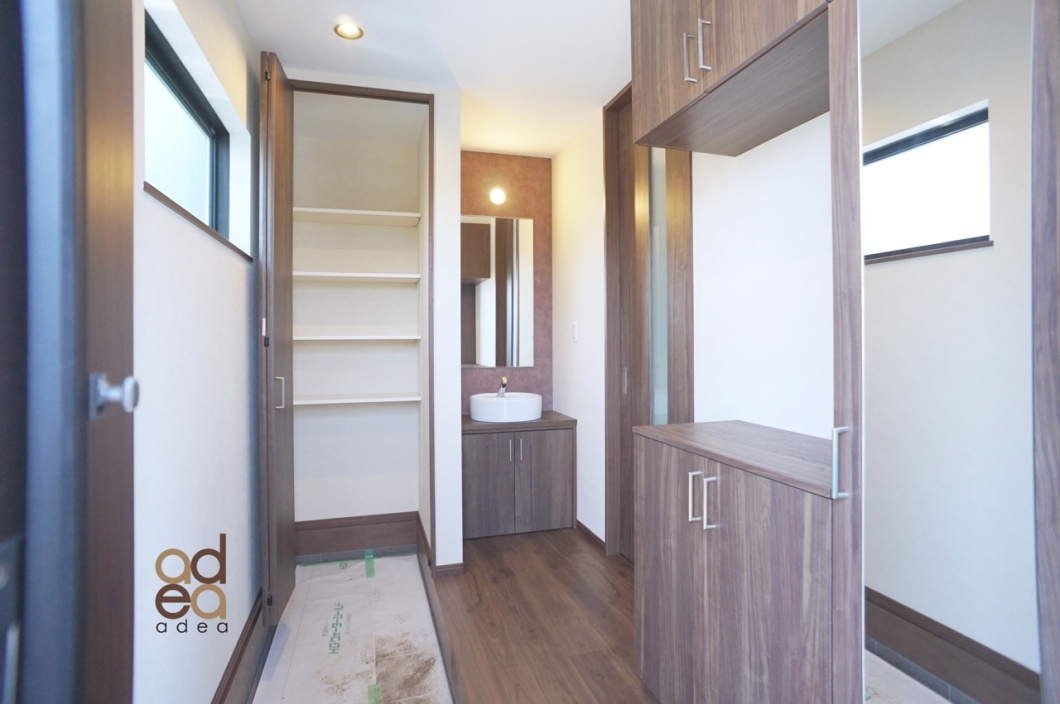 建物の家事動線、収納はもちろんですが未来へ繋ぐ快適な暮らしの為に設備仕様を充実させていてます。