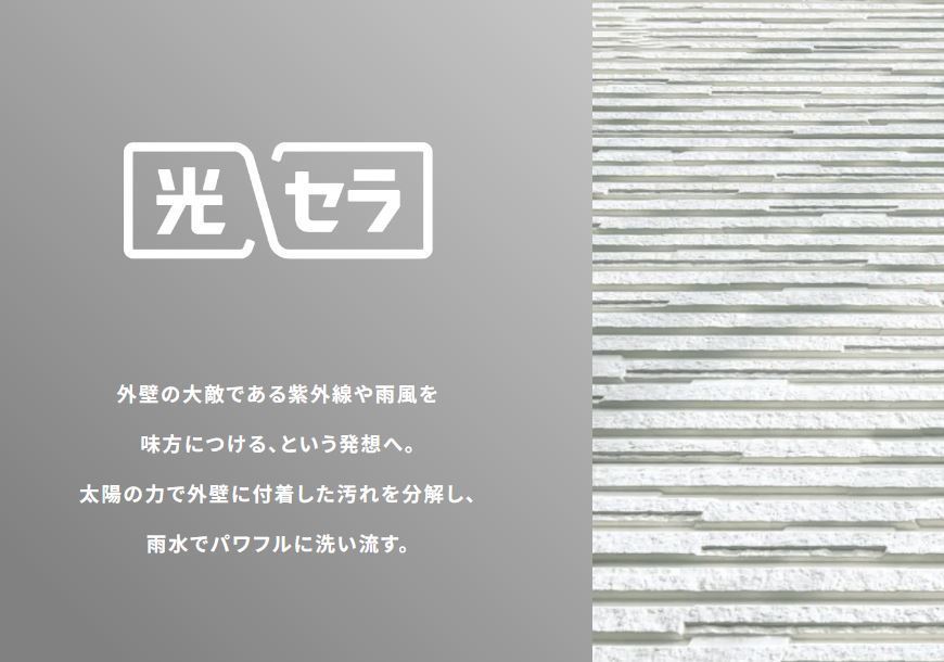 また、フロンガスを使用せず水を使用して発泡させる為、人と地球に優しい素材です。外壁 光セラ