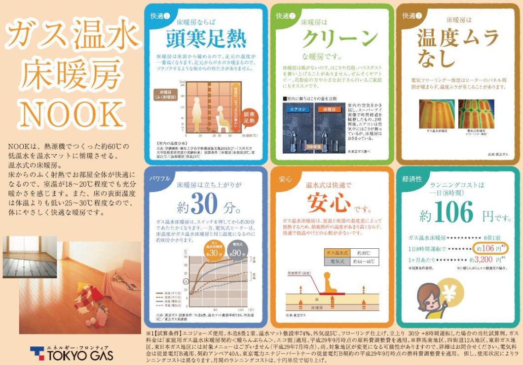 足元から室内を温める『ガス温水式床暖房』を装備。