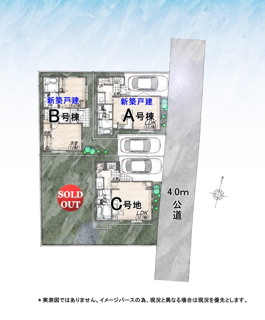 | 備考・制限等 | 建物参考価格(2階建て3LDK・カースペース1台)/No.A・No.C 1800万円(税込)、No.D 2000万円(税込)。 詳細は担当者まで。 |