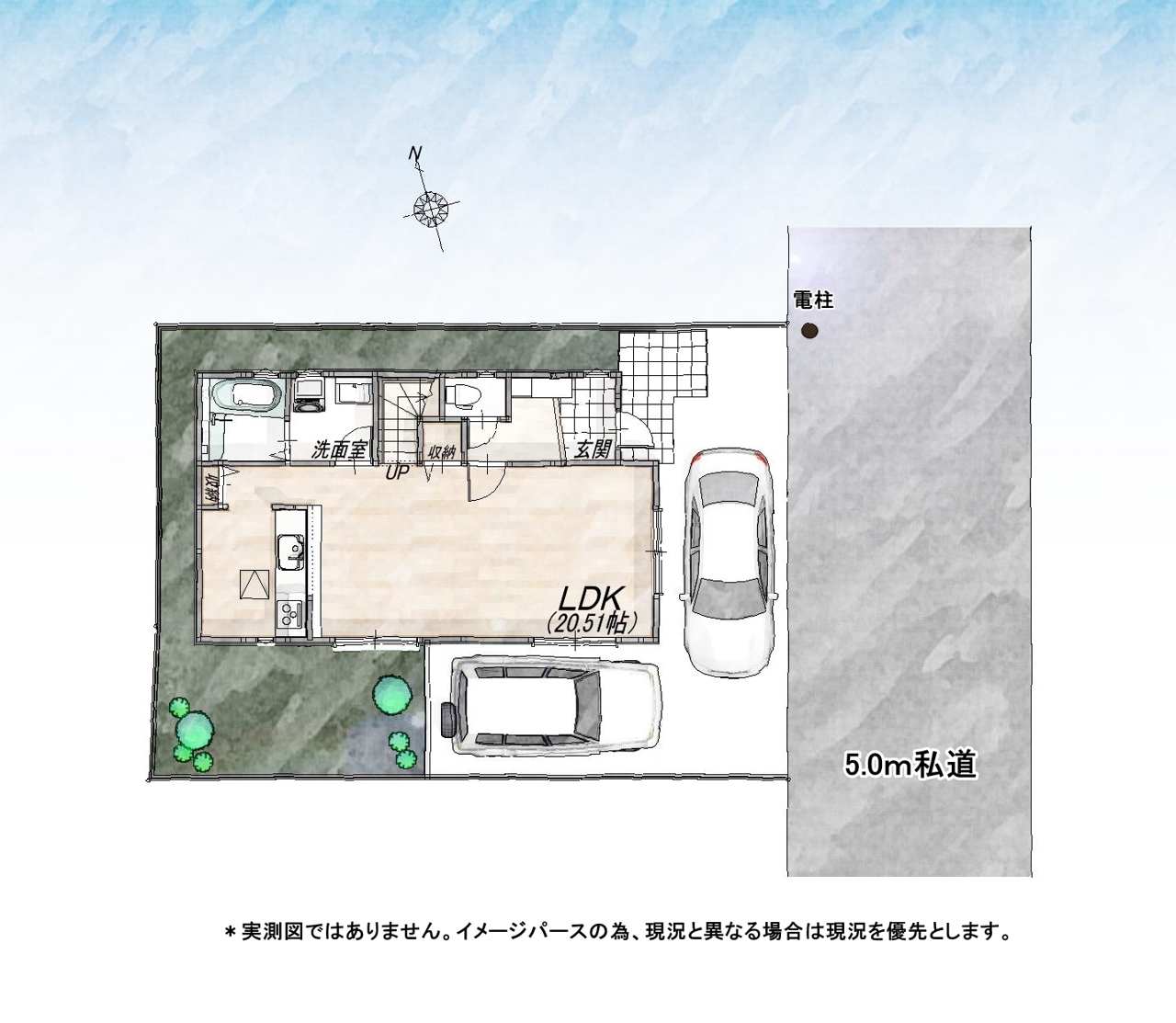 | 権利種類 | 所有権 | 接道 | 東側5M私道に9.48M接道 |