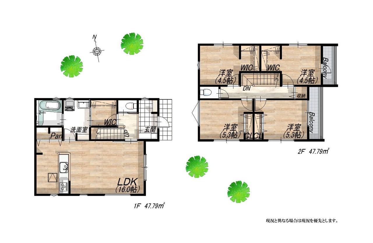 - ※完成予想図はいずれも外構、植栽、外観等実際のものとは多少異なることがあります。