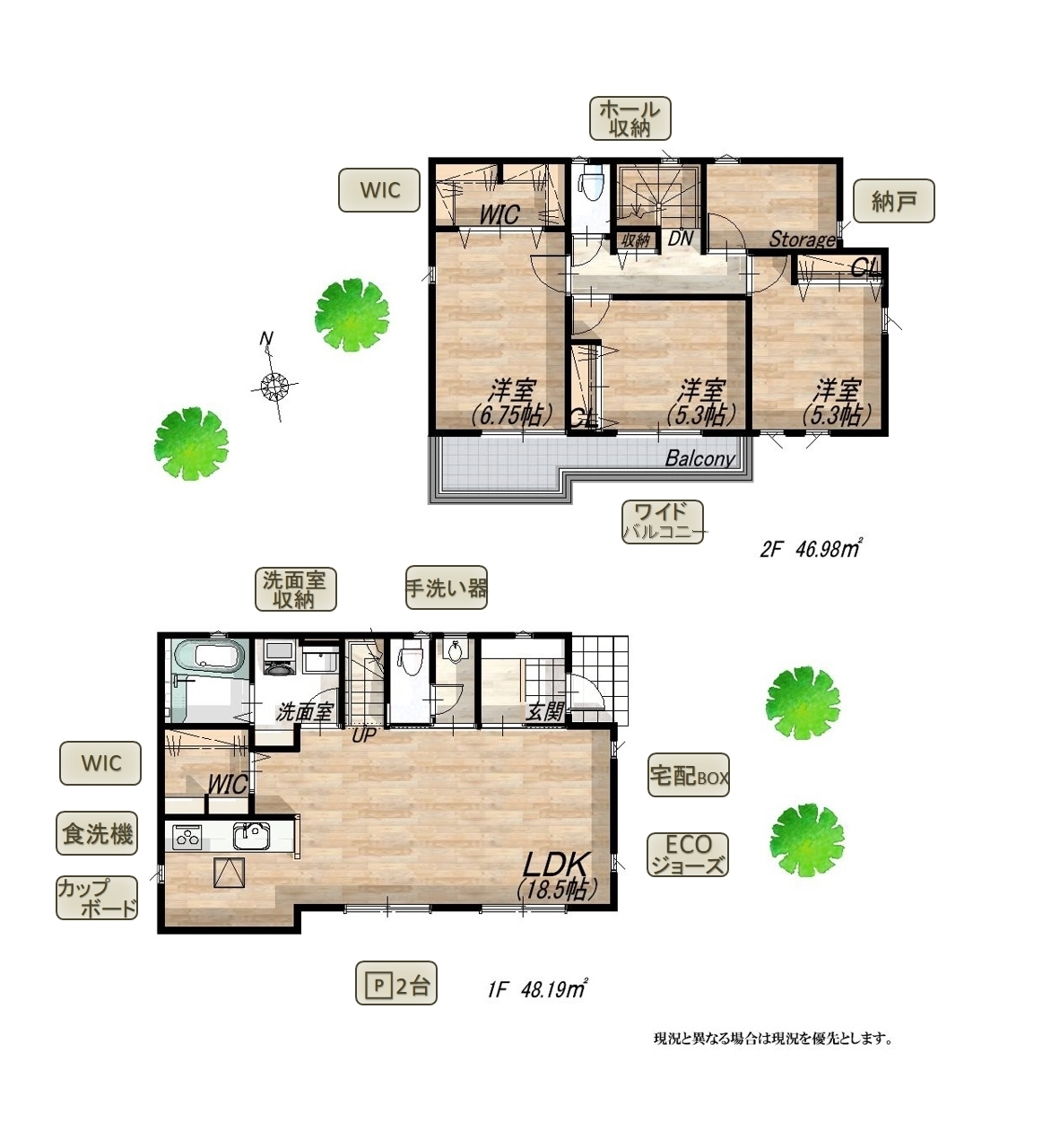 - ※完成予想図はいずれも外構、植栽、外観等実際のものとは多少異なることがあります。
