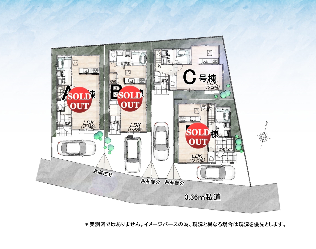 - ※完成予想図はいずれも外構、植栽、外観等実際のものとは多少異なることがあります。