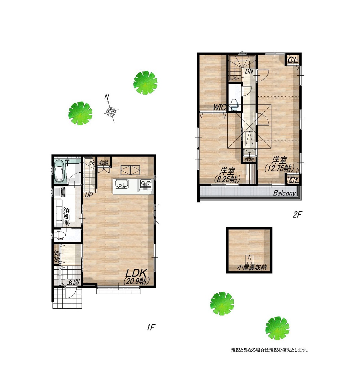 - ※完成予想図はいずれも外構、植栽、外観等実際のものとは多少異なることがあります。