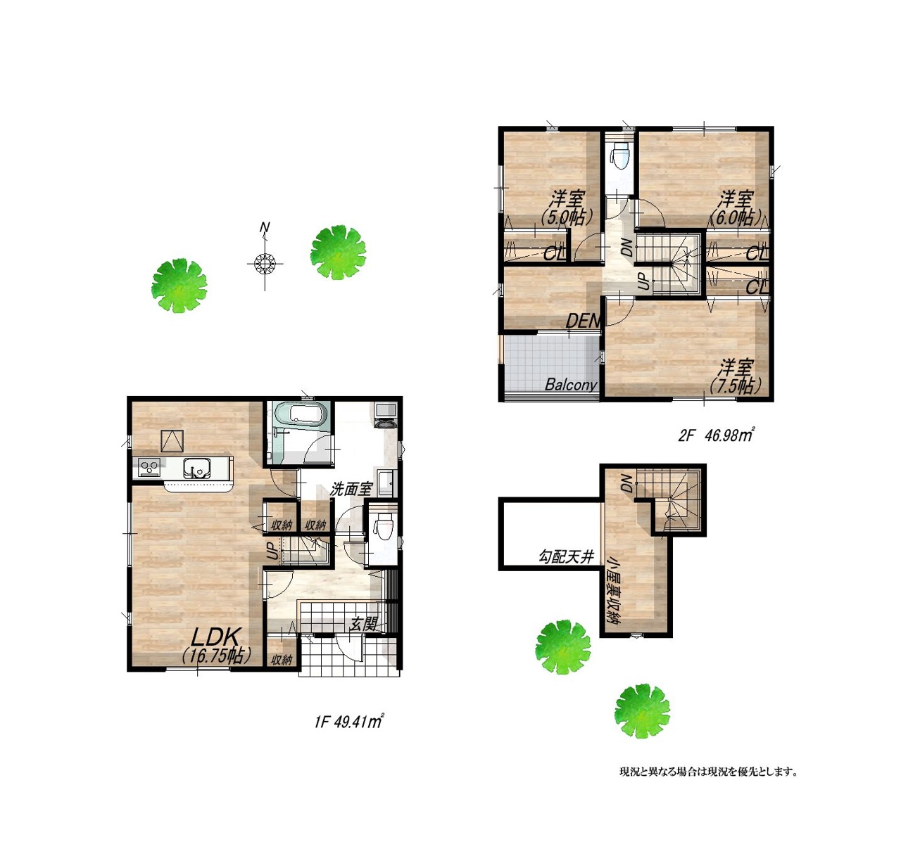 - ※完成予想図はいずれも外構、植栽、外観等実際のものとは多少異なることがあります。
