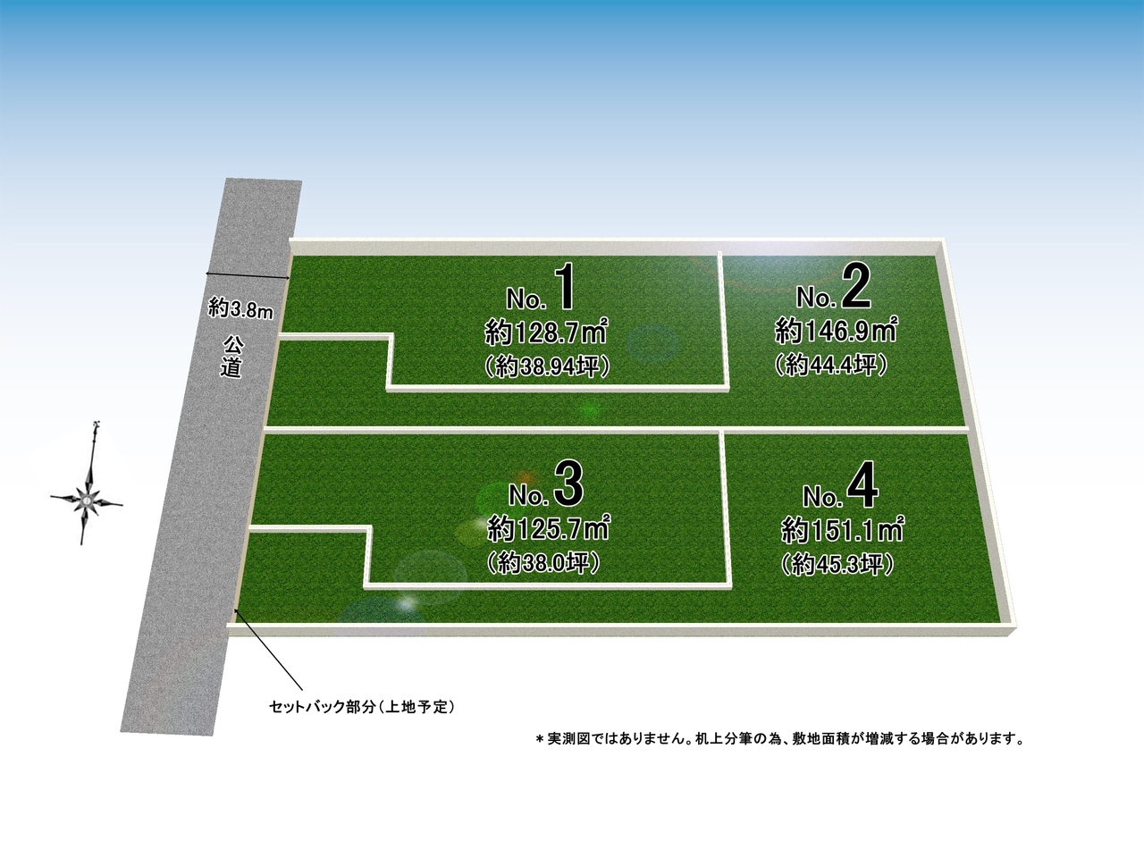 | 土地面積 | 125.7m² ~ 151.1m² 実測 | ||