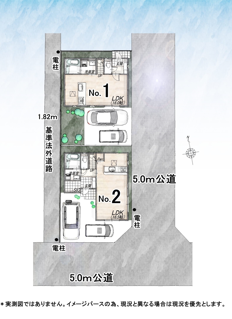 | 接道 | 東側5M公道に接道 南側5M公道に接道 西側1.82M公道に接道 |