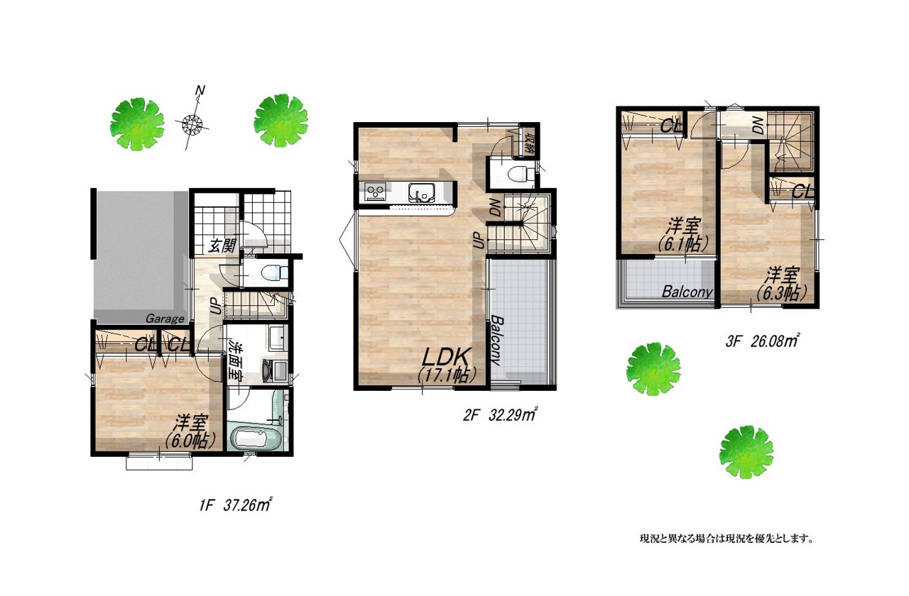 - ※完成予想図はいずれも外構、植栽、外観等実際のものとは多少異なることがあります。